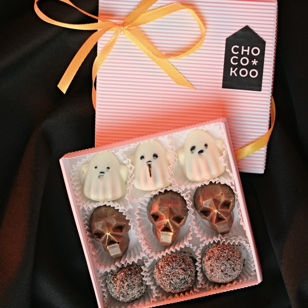Valrhona couverture chocolate and fruit purees are used to make these bonbons and truffles.