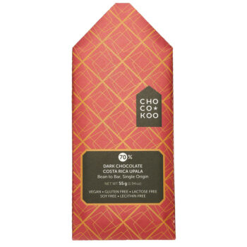 Suklaamuna on vuorattu kerroksella appelsiinikaramellia sekä marjojen ja pähkinöiden sekoituksella. Paketissa läpinäkyvässä rasiassa. Tuote on vegaaninen ja gluteeniton.