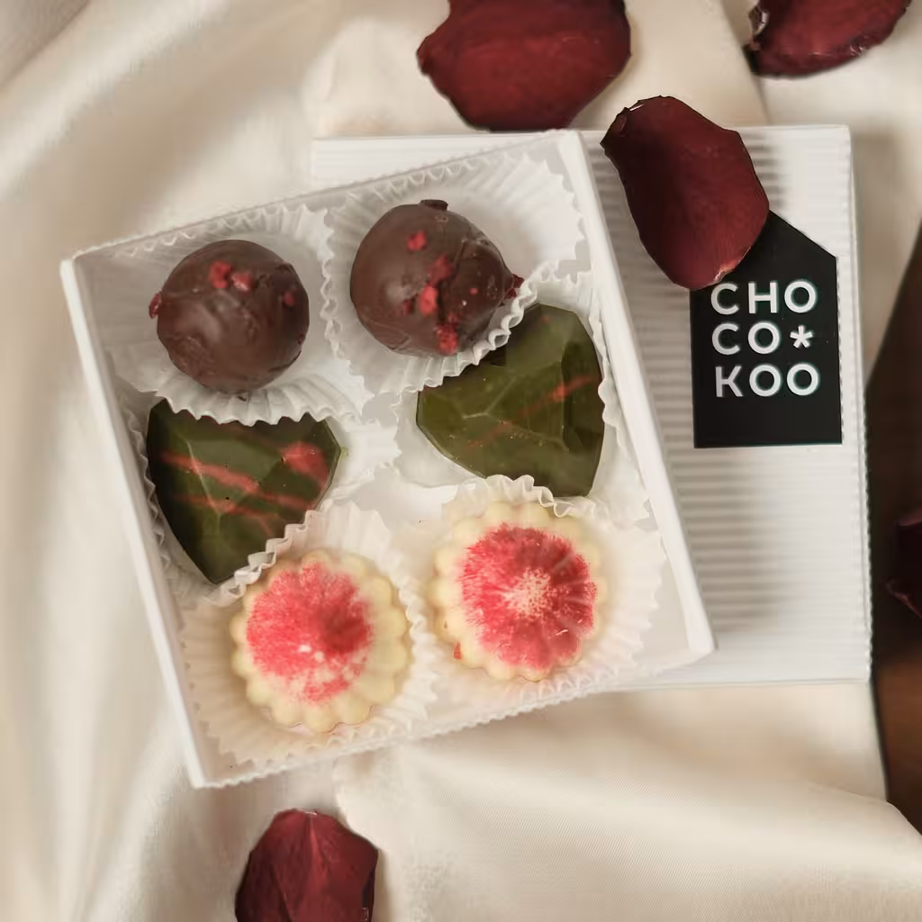 Selle karbi kommide valmistamisel on kasutatud Valrhona kuvertüüršokolaadi ja erinevaid puuviljapüreesid.